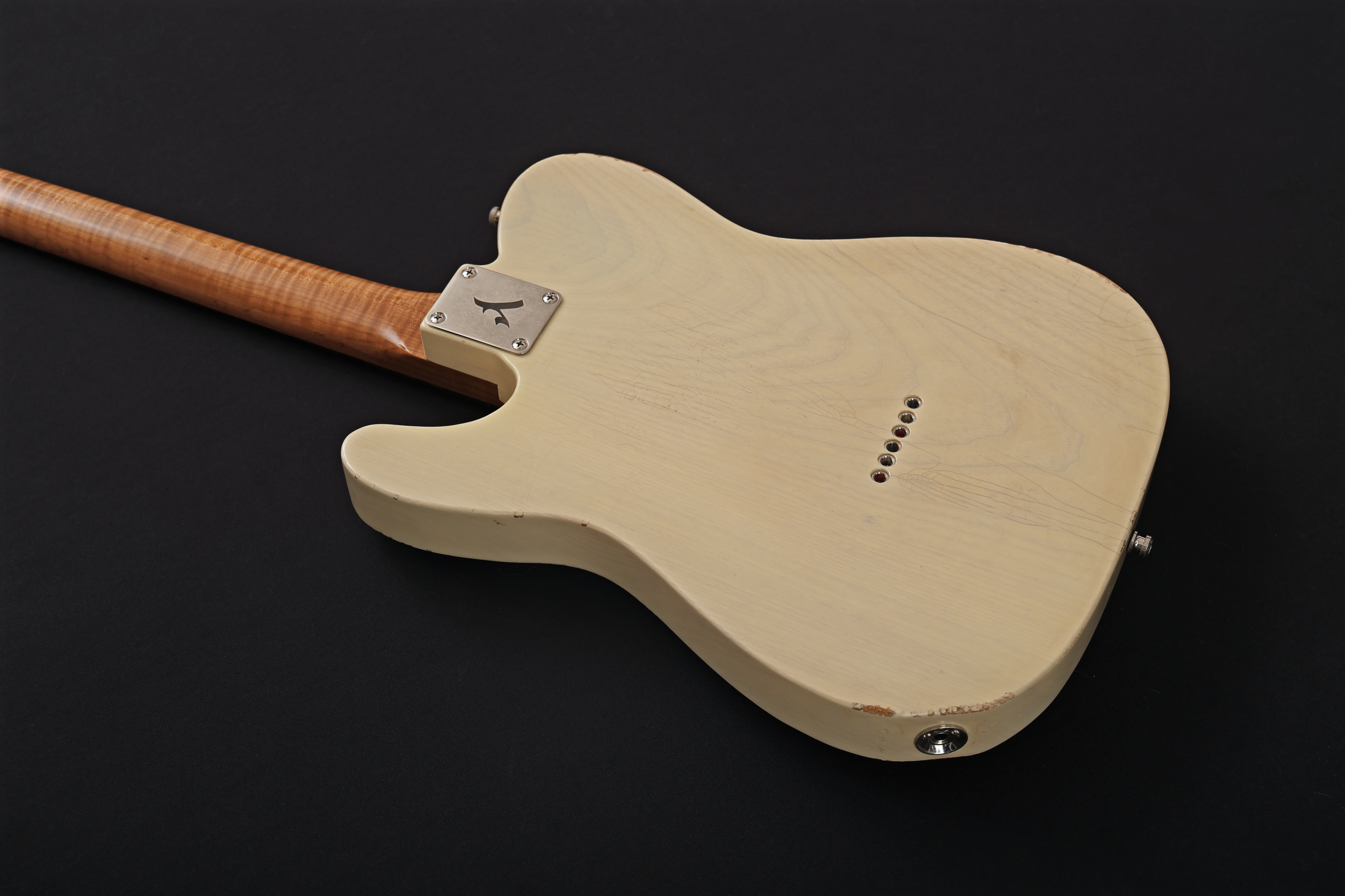 lightly aged nickel hardware with branded neck plate